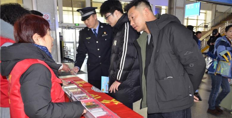 山东济宁:禁毒宣传进车站 禁毒知识入心间
