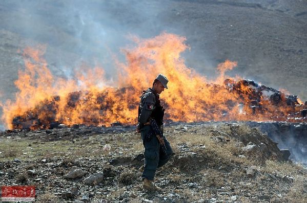 资料图片:阿富汗官方集中销毁了逾20吨毒品,包括鸦片、海洛因、大麻等。新华社美联