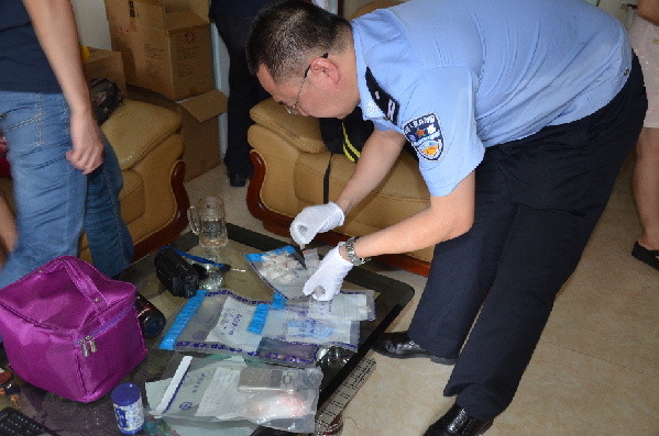 今年5月初,民警接到群众举报称,荷城街道某高档住宅楼内有一名叫严某的男子有涉毒嫌疑。6月1日中午,高明公安分局禁毒大队民警在荷城高明大道某住宅楼内将严某抓获,并从其住处的床头柜内搜出疑似K粉40小包,共计21.3克。经现场检测,严某尿样呈K粉阳性反应。