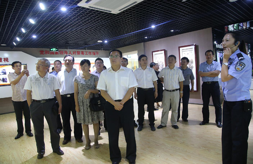 在解说员的带领下,戴声满和县四大班子全体人员参观了临泉县禁毒教育基地。