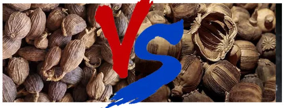 罂粟外表光滑,与鸽子蛋差不多大,一头尖,另一头有9-12瓣的冠状物;草果外表粗糙,外表分布均匀的楞,没有冠状物。