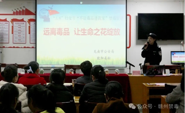 3月7日上午,龙南市公安局禁毒大队联合妇联在龙洲社区开展以“不让毒品进我家”为主题的禁毒宣传活动。