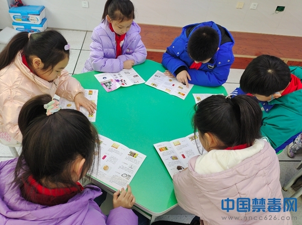 图为学生阅读禁毒宣传折页。中国禁毒网发