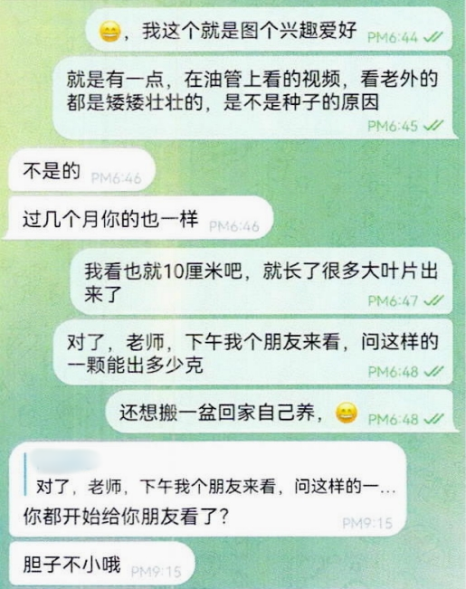 此后,张某在群里回答问题时就会表明“如需一对一指导,需缴纳500至3000元不等的学费”。这一另类的培训课吸引了不少“瘾君子”,每天都有人私信张某学习种植。