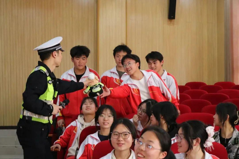 活动伊始,民警结合高中生的出行特点,用生动的语言和真实案例,讲解了交通安全知识,提醒同学们在骑车和乘车时要注意安全,正确佩戴安全头盔和系好安全带。在有奖问答环节,同学们踊跃参与,现场气氛热烈,回答正确还有精美小礼品,进一步激发了大家的参与热情。紧接着,民警耐心解答了同学们提出的各种交通安全疑问。