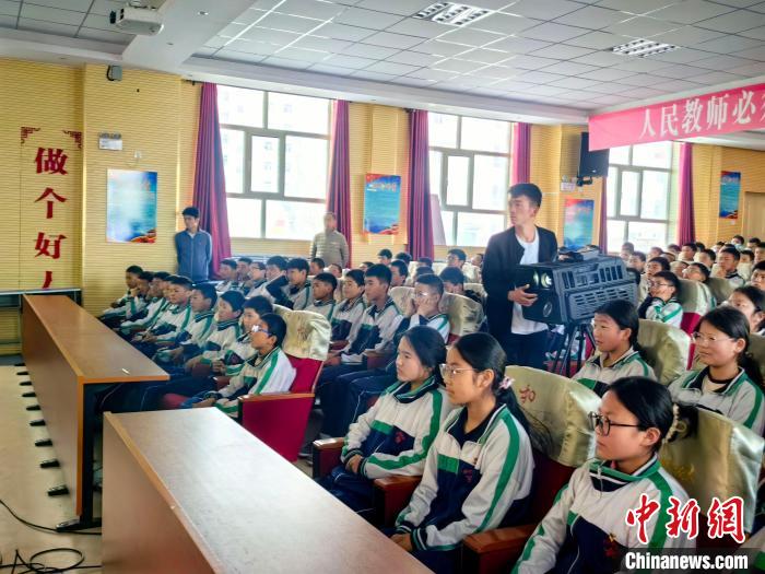 图为许正东在共和县中学放映禁毒影片。海南州禁毒办供图