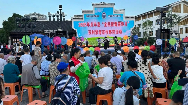 为进一步扩大禁毒宣传教育覆盖面,提高广大群众识毒、防毒和拒毒意识,6月14日,贞丰县禁毒办联合县文广局组织禁毒专干、禁毒志愿者利用贞丰县2025“文化和自然遗产日”非遗展示展演活动为契机,开展“全民禁毒宣传月”系列禁毒宣传教育活动。