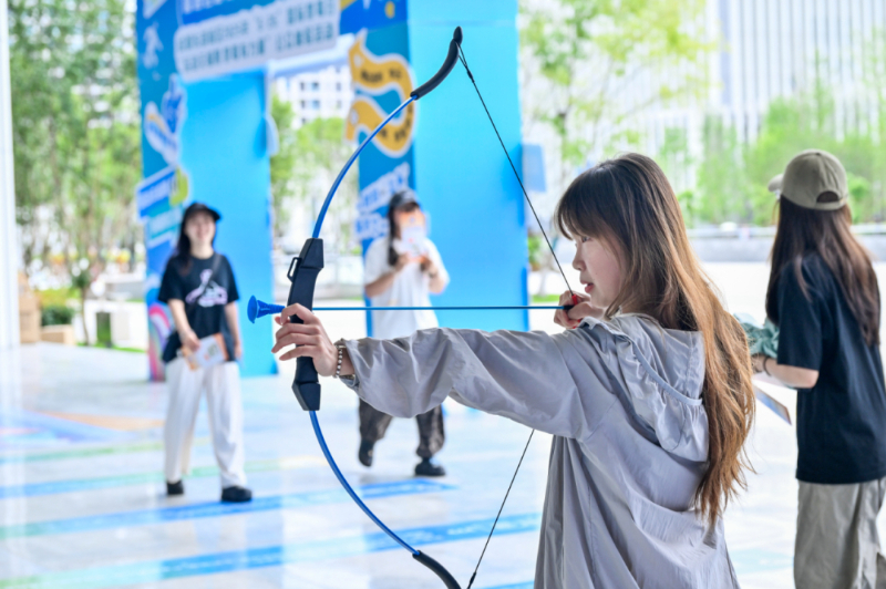 活动现场还设置了世运会项目体验区,荷球、射箭、地掷球、飞盘等运动项目轮番开展,参与者在挥洒汗水中感悟“健康人生 绿色无毒”的内涵。