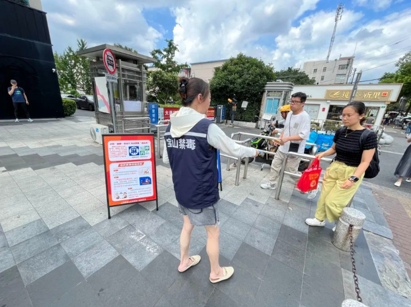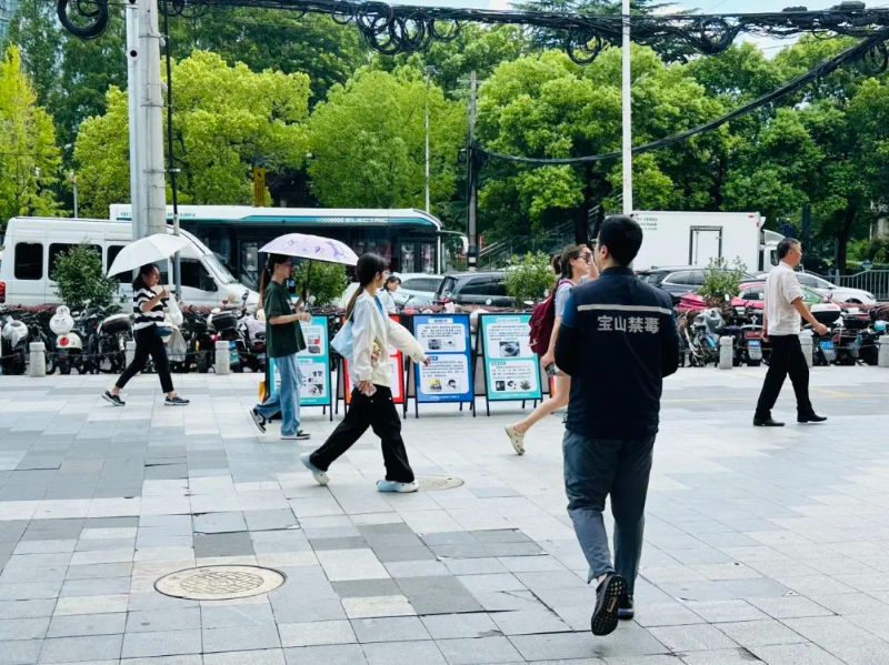 8月初,禁毒社工和禁毒志愿者共同来到殷高西路遇道广场开展禁毒宣传,向过往的路人和附近居民宣传毒品危害知识。