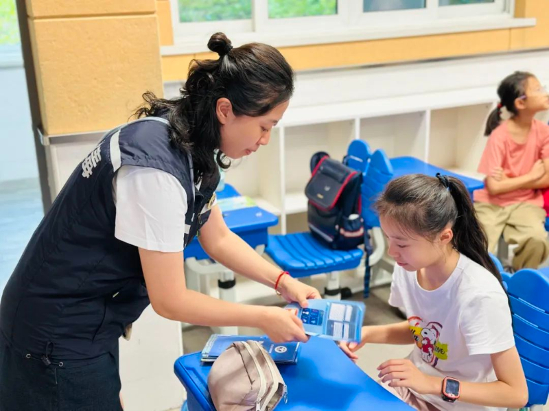 在暑假期间,禁毒社工还积极参加高境镇“爱心暑托班”,为暑托班同学们带来了别开生面的禁毒知识讲座。