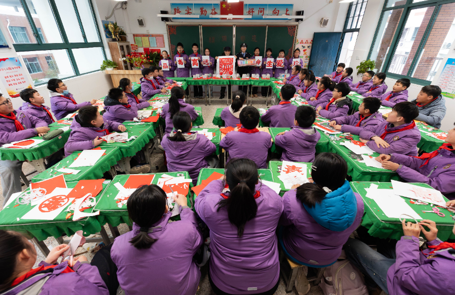 中国禁毒网讯 近日,安徽滁州天长市公安局联合多部门,特邀民间非遗剪纸艺人走进城南小学六年级课堂,以“指尖非遗话禁毒 童心筑梦迎新年”为主题开展了一场别开生面的禁毒宣传活动。
