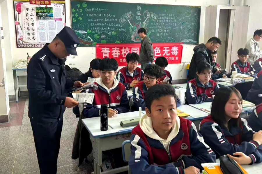 与此同时,总寨派出所组织民警辅警走进总寨中学,以“健康人生、绿色无毒”为主题开展宣传活动。民警通过专题讲座、案例讲解、互动问答等形式,普及传统毒品与新型毒品知识,揭露“奶茶”“电子烟”等伪装毒品的隐蔽性,提醒学生提高警惕、远离毒品。此外,结合真实案例以案释法,普及禁毒法律法规,引导学生树立正确价值观。面对学生的积极提问,民警逐一耐心解答,现场互动氛围热烈,不仅有效激发了学生主动学习禁毒知识的热情,还让学生们学到了实用的禁毒知识,提升了自我保护能力。下一步,城中公安分局将持续拓展宣传阵地,深化警校联动,常态化开展禁毒宣传,全力营造无毒校园环境,守护青少年健康成长。