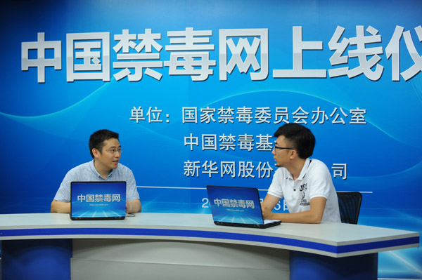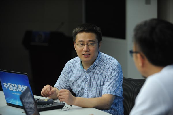 2014年6月26日,中国禁毒网上线仪式在北京举行,南通伊士生物技术有限责任公司副总经理王拥军出席上线仪式。图为王拥军接受中国禁毒网专访。