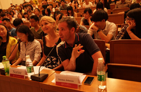 北二外影视作品翻译大赛决赛评委提问。