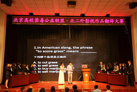 现场翻译电影片段、看作品评出最佳字幕组。2014北京高校禁毒公益联盟北二外影视作品翻译大赛决赛近日举行。
