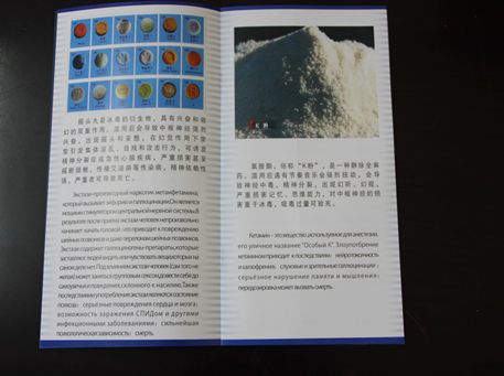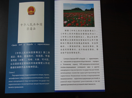 具了解,该禁毒宣传手册在原有禁毒宣传手册的基础上,增添了以俄文形式注释的禁止非法种植罂粟、禁止吸食冰毒、麻古、摇头丸、氯胺酮、盐酸曲马多等毒品(精神药品)以及“毒驾”的严重危害等方面内容;同时,手册还以俄文描述的方式,详细介绍了中国严格管理含麻黄碱类复方制剂的基本要求、赴俄人员严禁携带含有西布曲明物质的要求、对毒品违法犯罪的处罚规定等基本知识;另外,手册还以俄文向来中国的俄罗斯公民公布了黑龙江省公安厅接受毒品违法犯罪举报的各种方式。