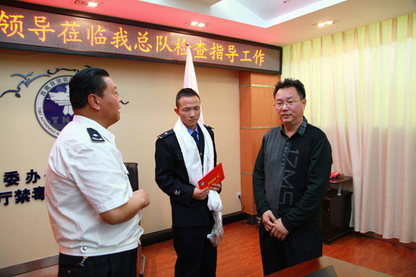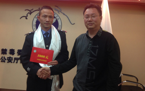 2014年7月18日,中国禁毒基金会慰问拉萨市公安局禁毒支队民警毛兴泽。中国禁毒网 黄晨璐 摄