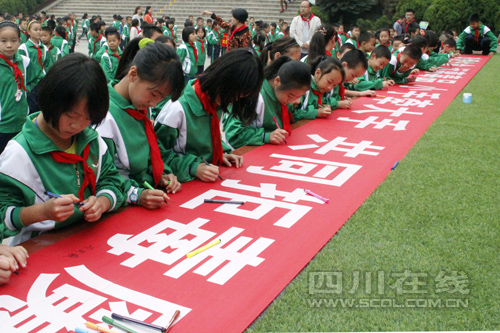 10月27日,泸州市叙永县落卜中心校校园内人头攒动。当日,该校举行禁毒宣传教育活动,600余名师生分别在“珍爱生命,拒绝毒品,小手牵大手,共同拒毒魔”的大型横幅上签名,活动进一步强化了广大师生“珍爱生命、远离毒品”的意识。