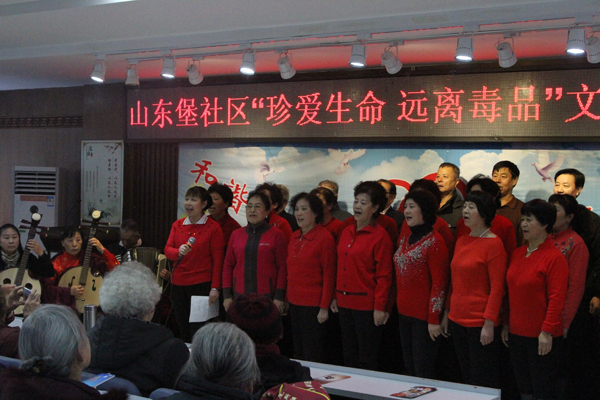 中国禁毒网12月17日电(通讯员曲士博)2014年12月16日下午,辽宁省沈阳市沈河区公安分局携手沈河区老年义务禁毒宣传队走进沈河区山东堡社区开展以“珍爱生命 远离毒品”为主题的文艺宣演活动。