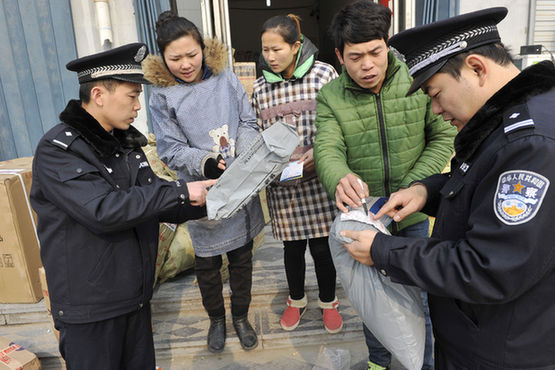2月3日,山东省定陶县公安局东城派出所民警走进辖区物流、快递公司,向从业人员讲解利用货物运输毒品的典型案例和毒品的种类,切实提高从业人员对毒品的认识,防止犯罪分子利用物流渠道进行毒品交易。通讯员朱建英 摄 中国禁毒网 发