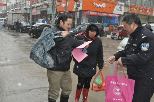 同日,白山派出所社区民警也冒着大雪走进辖区街面、商店、宾馆、超市开展禁毒宣传活动,向群众散发禁毒知识宣传单,讲解禁毒法律法规,宣传毒品对个人、家庭和社会的危害,号召广大群众坚决同毒品违法犯罪作斗争。(陈卫国 张付华)