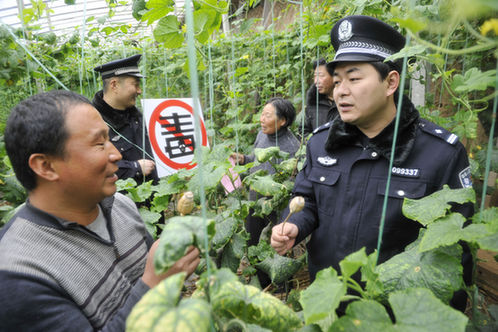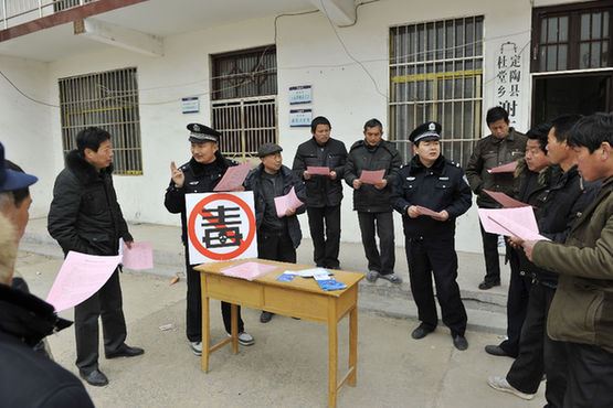 中国禁毒网讯 2月27日,山东省定陶县公安局杜堂派出所民警深入辖区村居、蔬菜大棚,用植物罂粟作为“活教材”,向村民讲解种植罂粟对家庭、对社会造成的危害,切实增强村民自觉自愿抵制毒品的意识和能力。(朱建英 摄)