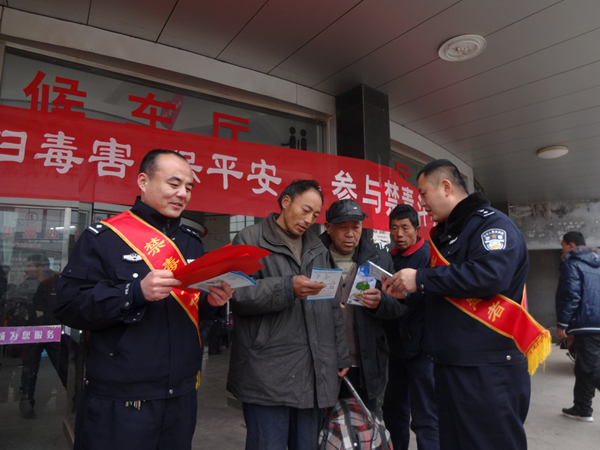 中国禁毒网讯(通讯员 刘维)在百城禁毒会战期间,为提高群众对毒品危害和禁毒知识的认知度,加强群众禁毒意识和抵制毒品的能力,3月3日,山东省成武县公安局刑警大队禁毒中队民警紧紧围绕重点场所和重点人群,进车站,进企业,开展多种形式的禁毒宣传教育活动。