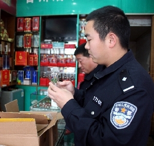 图为民警在香烟店查到“冰壶”。