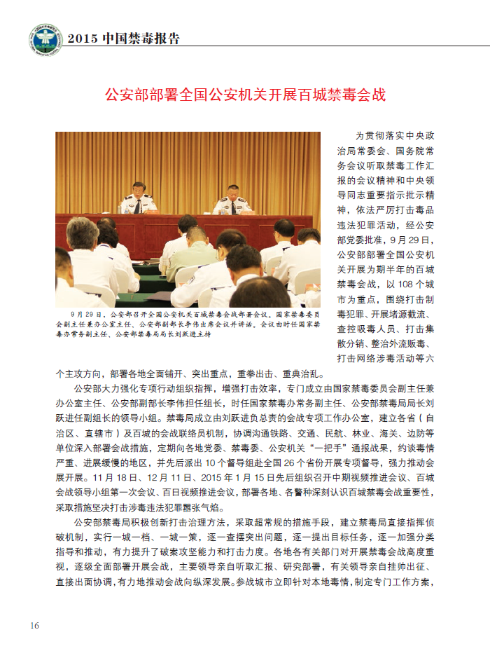 《2015中国禁毒报告》:中国政府高度重视禁毒工作
