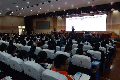 3月18日下午,民警来到青州三中,以有奖问答的形式组织开展了一堂别开生面的禁毒教育课。课堂上,各种贴近中学生生活的问题充分调动起了同学们了解禁毒、参与禁毒的积极性。根据民警提出的问题,同学们查网页、读报刊、问老师,现场气氛活跃。还有部分在校师生现场加入了禁毒志愿者队伍,主动肩负起了关心禁毒、支持禁毒、宣传禁毒的责任。同时,民警还在现场陈列了大量毒品样品、吸毒用具和宣传看板,使同学们更直观的了解到毒品的危害,更明确的认知毒品的特点,有效加强了教育效果。整堂课程内容将以录播的形式在青州电视台进行长达两周滚动播放,青州市各主流媒体记者也在现场对活动进行了深入报道,禁毒大队还通过微博、微信、网站等新媒体对活动进行宣传推介,力争社会效果最大化。