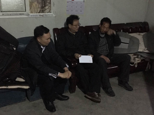 图为中国禁毒基金会秘书长李宪辉慰问贵州牺牲禁毒民警何建的家属。