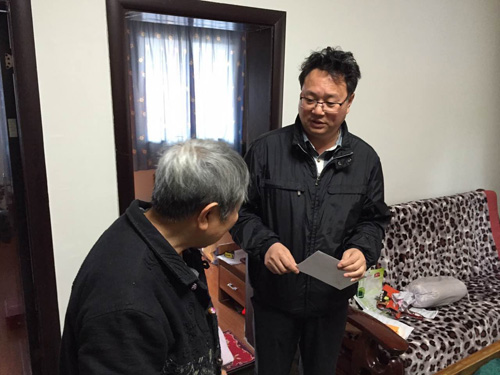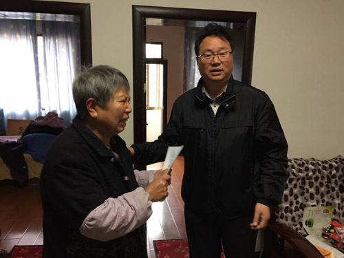 图为中国禁毒基金会秘书长李宪辉慰问贵州牺牲禁毒民警王彤的家属。
