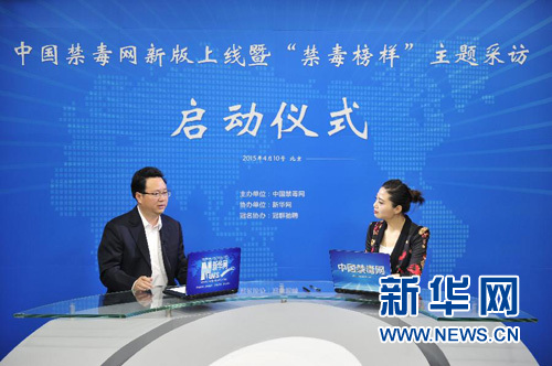 2015年4月10日,国家禁毒委员会办公室副主任、中国禁毒基金会秘书长李宪辉接受新华网电视采访,与网友互动。当日,中国禁毒网(www.nncc626.com)新版上线暨“禁毒榜样”主题采访活动启动仪式在北京举行。中国禁毒网自2014年6月26日国际禁毒日正式上线以来,在海内外产生了良好的影响。此次新版是在公安部禁毒局、中国禁毒基金会的指导下,经过深入调研,结合新时期互联网新媒体的发展趋势,采用新的交互方式和新媒体技术倾力打造的网络传播平台。新华社记者 杨光 摄