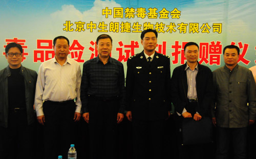 中国禁毒网北京4月14日电 4月14日下午,中国禁毒基金会在北京举行捐赠仪式,中生朗捷生物技术有限责任公司向该会捐赠价值400万元人民币的毒品唾液和尿检试剂,主要用于支持黑龙江、天津、重庆、安徽、海南、广西、云南、甘肃、内蒙古、新疆等地毒品检测工作。