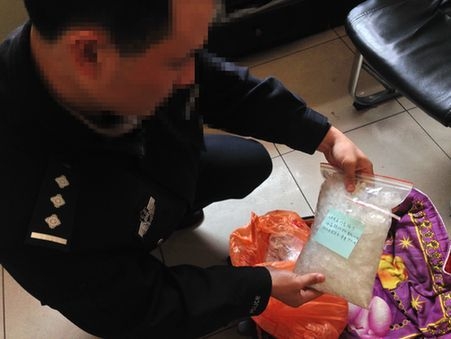 安徽淮南市谢家集警方成功侦破“2015-188号”部级毒品目标案件。图为缴获的冰毒