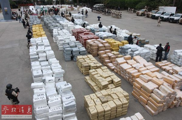 资料图片:2010年10月18日,墨西哥缴获105吨大麻.这是墨西哥当局一次性缴获数量最大、金额最高的一批毒品。缉毒官员估计,这批大麻在美国市场售价总计可达3.4亿美元。新华社发