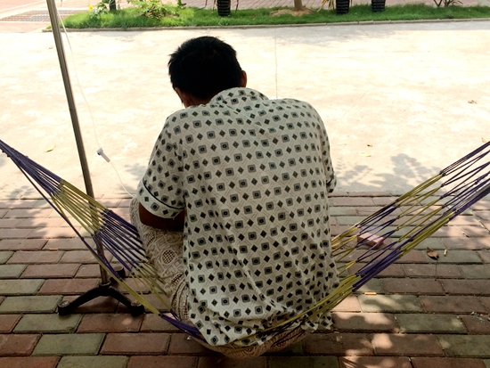 经过两天的治疗,阿三的气色好了很多。“当初刚来的时候起床都费力气,现在能走动了让我们欣慰。”海南人和戒毒医院副院长邢春燕说。