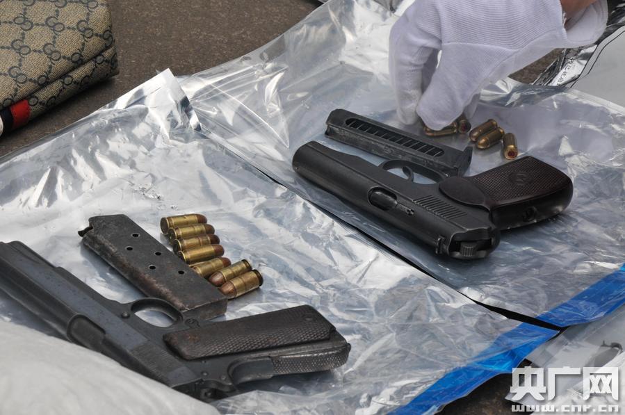 警方缴获的武器(李宁东 摄)