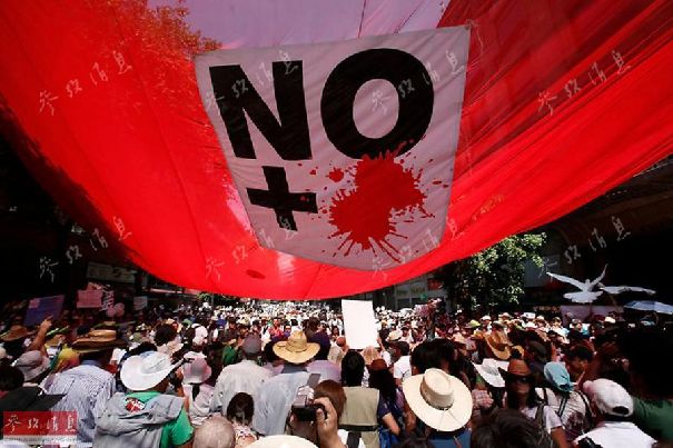 据不少官方组织估计,被贩毒集团雇佣的“娃娃兵”人数大概在2.5万人左右。另据墨西哥全国妇女协会的研究结果,从2008年初到2010年底,因贩毒入狱的女性罪犯数量翻了两番。图为墨西哥人抗议毒品暴力。