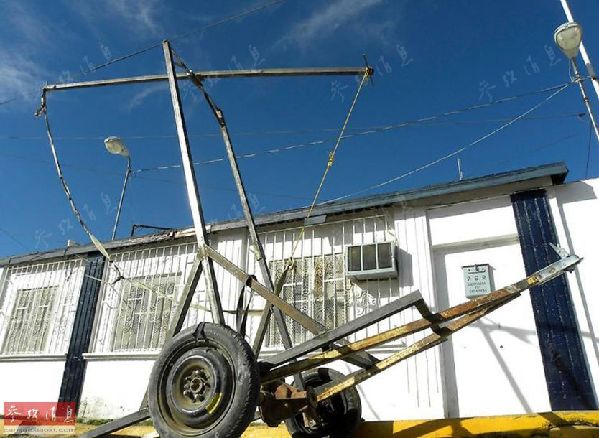 美墨边境地区墨西哥一侧的弹射装置,用这个装置把毒品抛射到美国。
