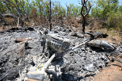 资料图片:被击落的墨西哥军方直升机残骸。(图片来源于网络)