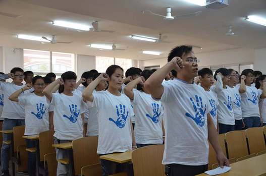 “我是中华民族的儿女,肩负着祖国的未来和希望。我保证,铭记历史,不忘国耻,坚决与毒魔作斗争……”铿锵有力的誓言从学生们的心灵深处迸发出来。面对鲜艳的国旗,学生们紧握右拳,庄重地许下誓言:做一名诚实、守信、健康、阳光的青少年,为实现中华民族的伟大复兴而努力奋斗!