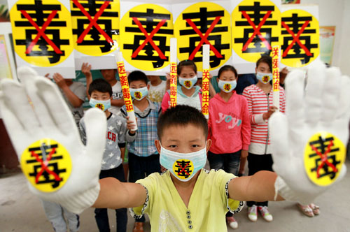 安徽淮北:中学生校园行为艺术宣传禁毒