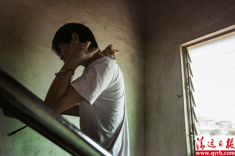 苏明将他的宠猫放在肩膀上往房间走去,他说,吸毒的人最怕孤独,有猫陪伴的夜里不会太孤独。