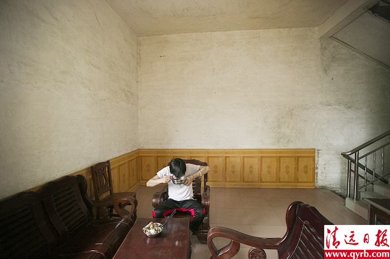 这里并不是他家饭厅,每到吃饭时间,他都将饭菜端到二楼的客厅吃,怕自己的病传染给家人。