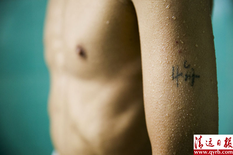 苏明左手臂上的“悔”字刺青是他为父亲而刺。