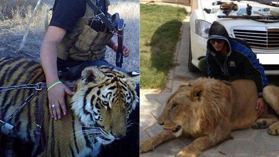 墨西哥毒枭古斯曼家中老虎和狮子(网页截图)