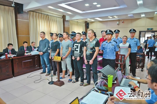 毒贩同台受审 记者 苏颖 实习生 李少通 摄