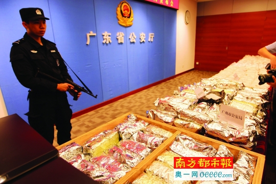 广东省公安厅展示“雷霆扫毒”收缴的毒品。南都记者 马强 摄