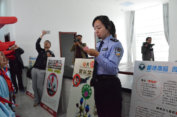中国禁毒网讯 为深入贯彻习近平总书记等中央领导同志对禁毒工作的指示精神,切实落实关于加强青少年毒品预防教育的针对性和时效性,切实提高青少年学生识毒、防毒、拒毒意识和能力。池州市东至县公安局结合开展“千警进万家 一线访平安”活动,达到“宣传一个,带动一片”的“1+6”模式,构建和谐警民关系建设,10月27日上午,池州市东至县至德、实验小学50名小学生记者应邀走进警营,开展为期半天的“学生进警营、童眼看公安”活动。 通过发放禁毒宣传小画册以及对禁毒宣传展板的讲解,小记者们对毒品的概念、种类、危害性有了更进一步的认识,增强了识毒、防毒、拒毒意识和能力。小记者们纷纷表示,通过此次活动,切身感受到了公安工作的繁忙和艰辛,回去后将通过自己的感悟和笔触记录下此次活动的瞬间,为禁绝毒品、构建和谐社会尽微薄之力。(丁英祥)